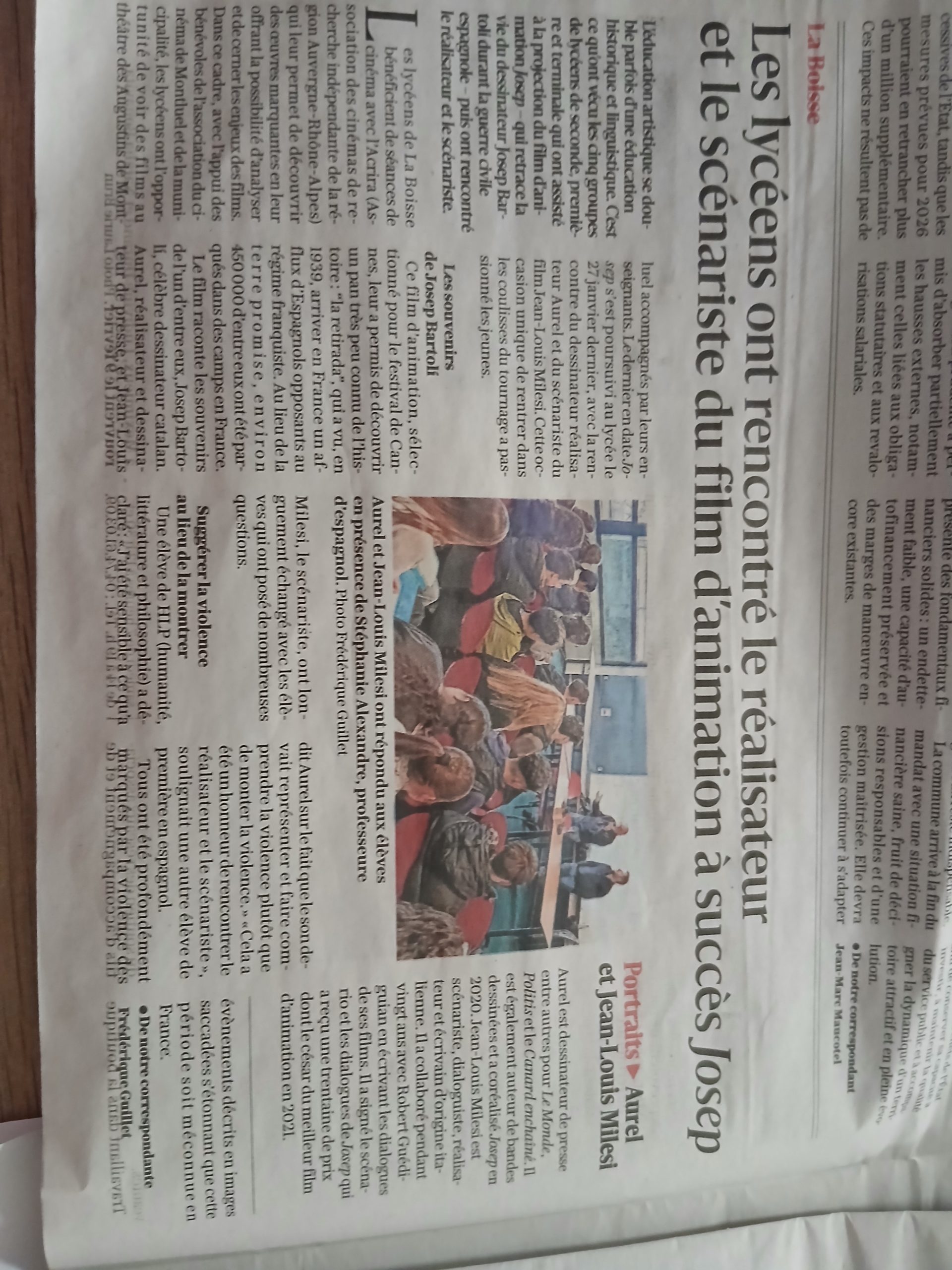 Les lycéens de La Boisse, située dans l’Ain, ont rencontré le réalisateur et le scénariste du film d’animation Josep. Ce temps d’échange a permis aux étudiants d’aborder plus en profondeur cette période trouble de l’histoire franco-espagnole, tout en s’intéressant aux coulisses de ce long-métrage, sélectionné à Cannes en 2020.