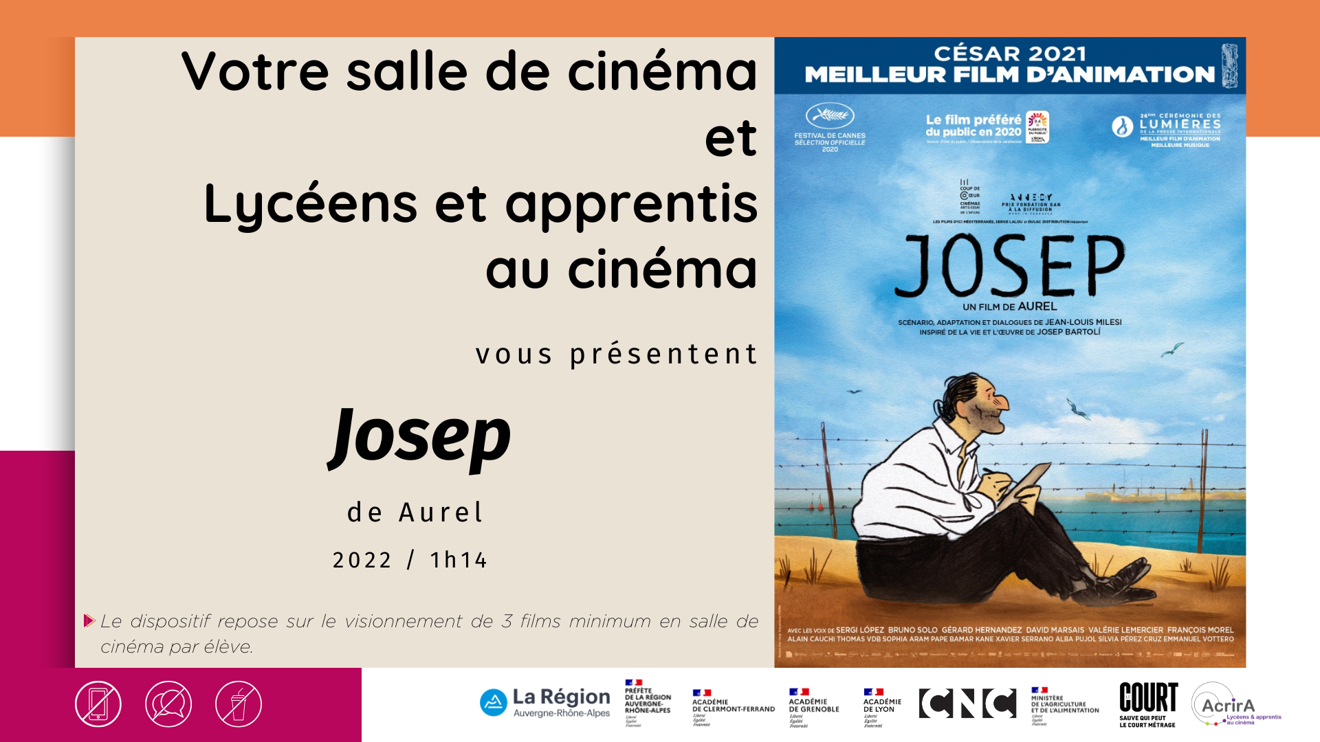 Vous y trouverez les coordonnées et films proposés pour chaque dispositif :
