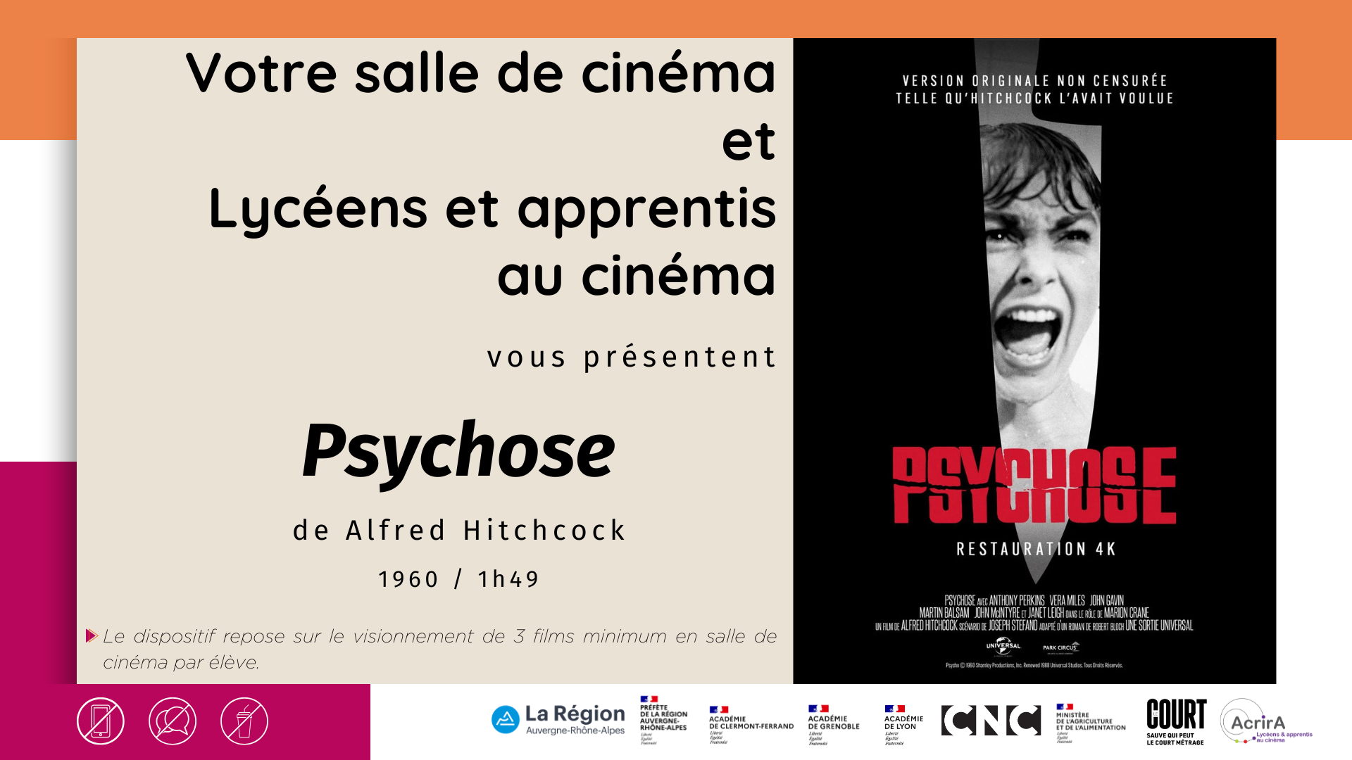 - Psychose de Alfred Hitchcock – 1h49 / 1960 / Noir et blanc : Park Circus :