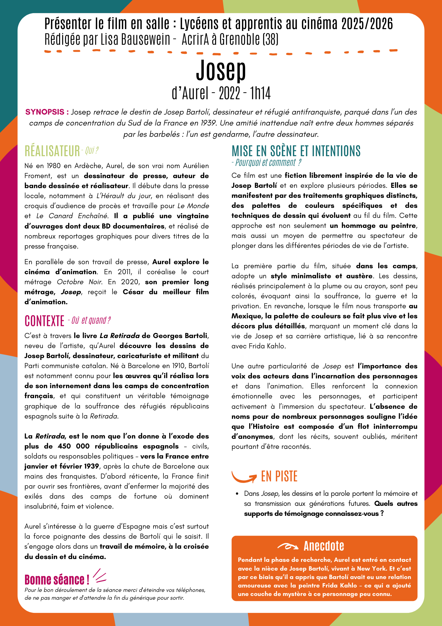 - Fiches « Présenter le film en salle » :